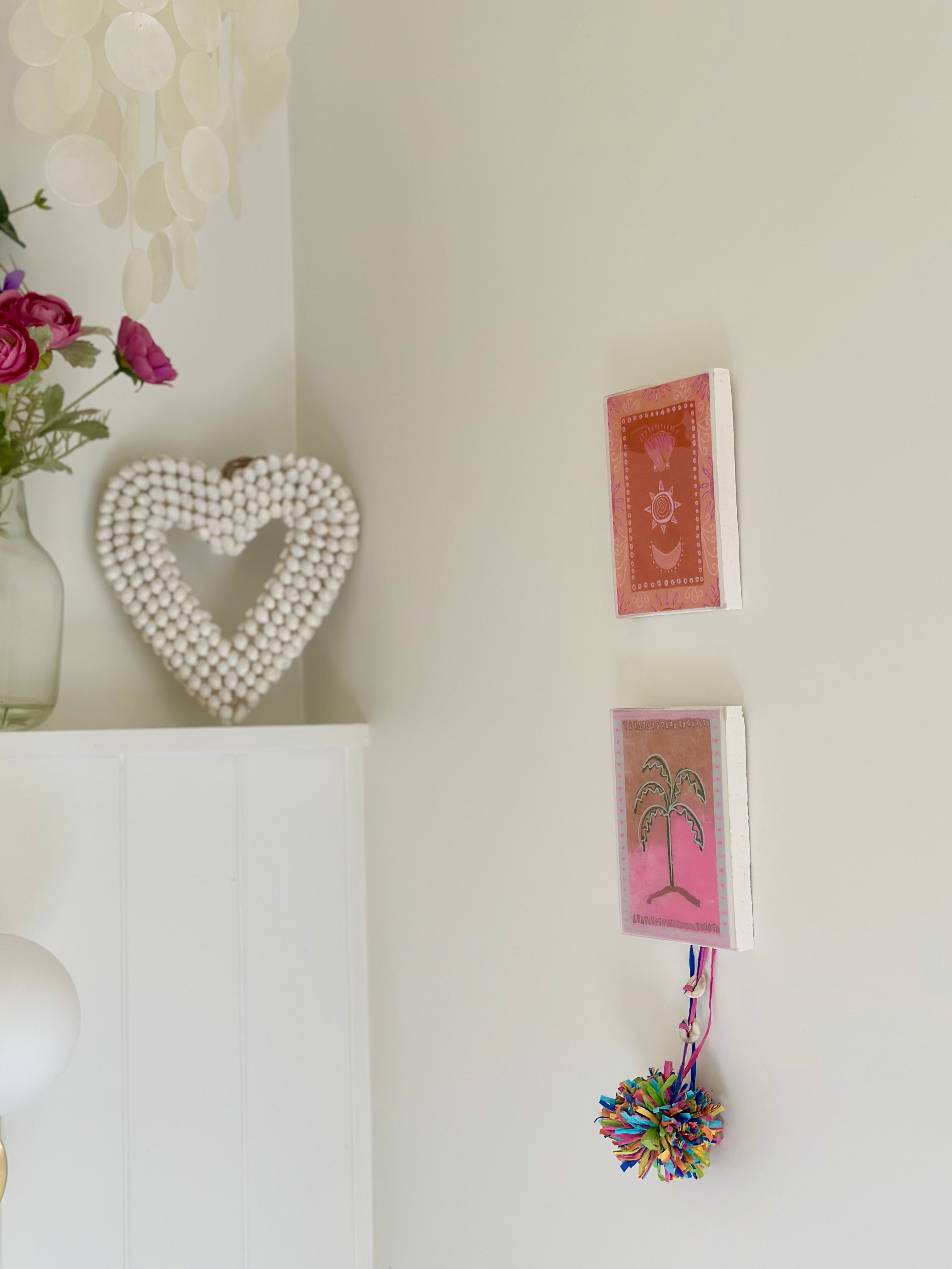 Handmade with heart and inspired by everything I love — palm trees, ocean days, warm sunsets, and a little bit of boho magic. Each piece is one-of-a-kind, designed to bring colour, sunshine, and a hint of coastal fun into your space.